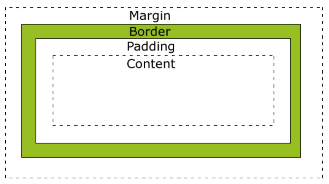 margin 外边距、 border 边框、 padding 内边距、 content 内容