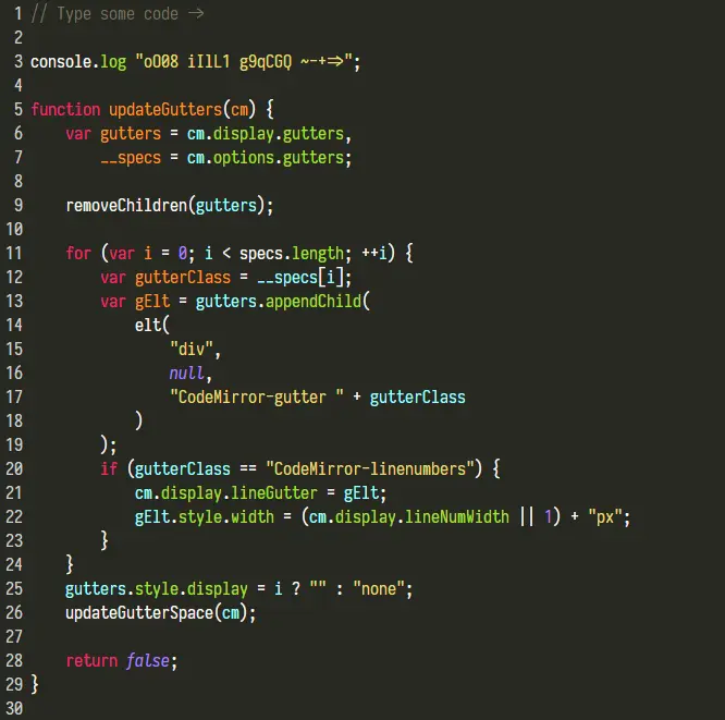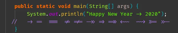 Fira Code 是 Mozilla 提供的字体,它基于 Fira Mono 等宽字体的一个扩展,主要特点是加入了编程连字特性,注意上图中的 -> 符号。如果感觉不明显来看看我们常用的几个: