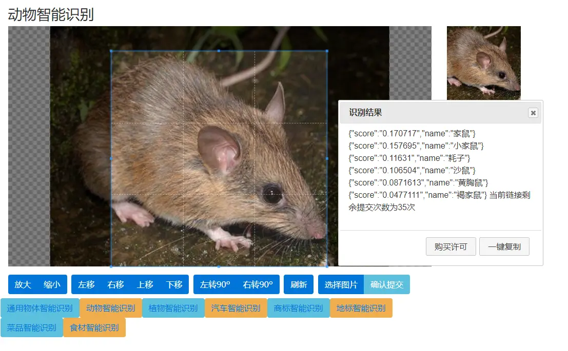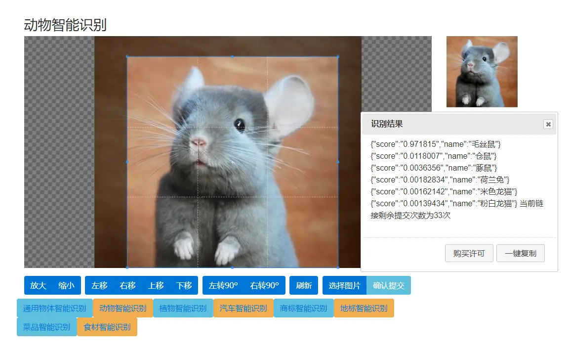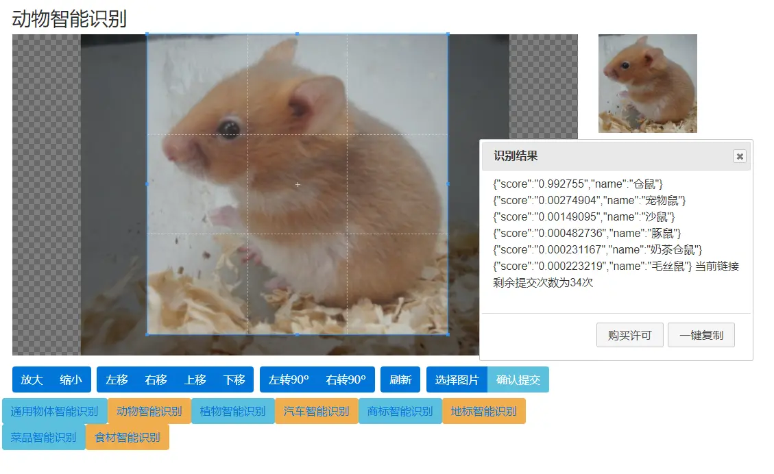 非常简单,可以看到里面提供了动物智能识别的试用: