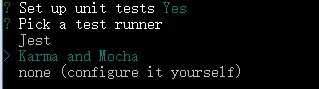 在新建vue项目的时候,有一个Set up unit tests的选项,询问是否使用测试单元,选择yes,会出现测试单元框架的选项,使用Jest或Karma 和Moch还是使用自定义的测试框架。这里我们选择Karma and Mocha