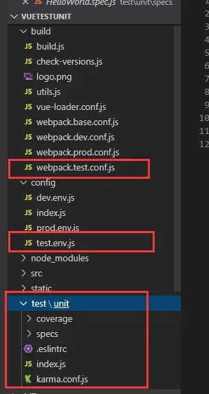 复制关于单元测试有关的文件夹到现有项目中相应的位置(可以新初始化一个vue项目进行赋值),包括: