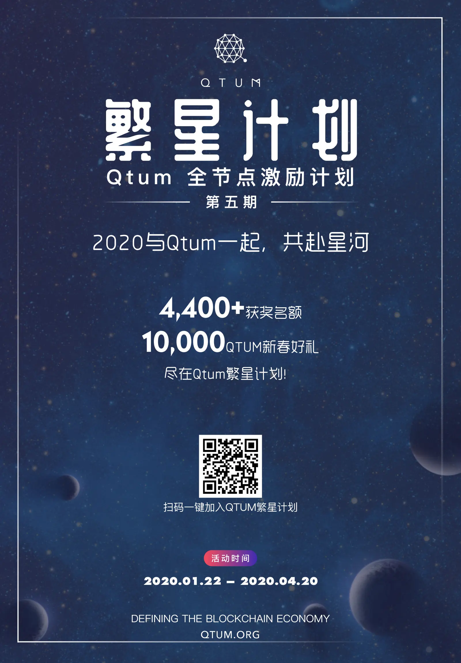 第五期繁星计划活动时间为2020年01月22日-2020年04月20日(东八区),4,400+中奖名额,共同分享 10,000 QTUM 新春大礼!