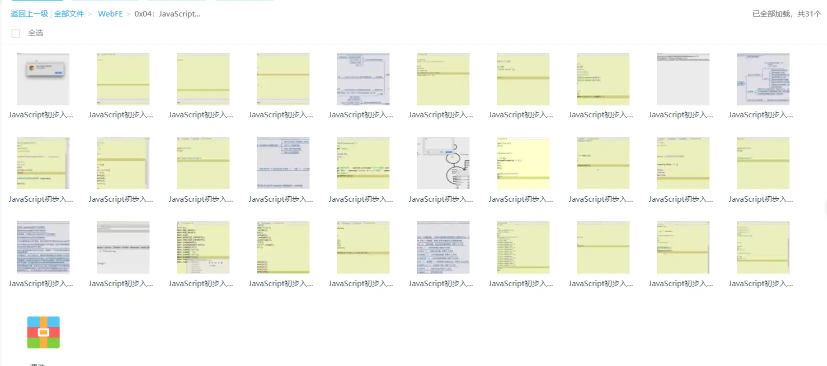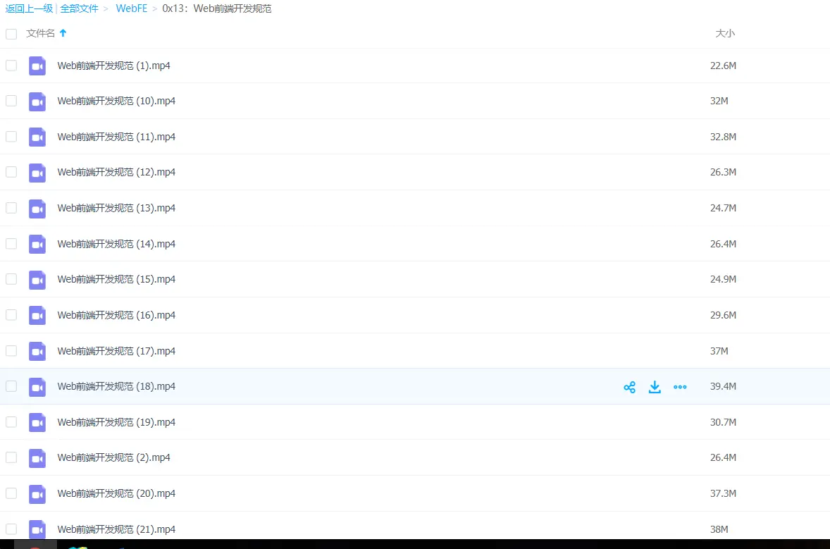 新年的一年开始了,给大家整理了一些学习视频,有各个阶段的,包括初级的,中级的,或者高级的,也有大家很少接触过的性能安全方面的视频,也有前端自动化的视频教程,也有vue 、react 、NG、微信小程序等的视频教程,这些都是精选出来的,基本上都是我自己通过付费获取的,现在免费分享出来给大家,希望对大家有帮助。其他话就不多说了,视频内容很多,涉及的范围也非常的广,下面的是我从里面整理出来的一些截图,方面你们看下,找到你们适合的教程,而不是一锅粥乱炖,当然你们网盘够大的话,你们也可以全部保存下来,哈哈!