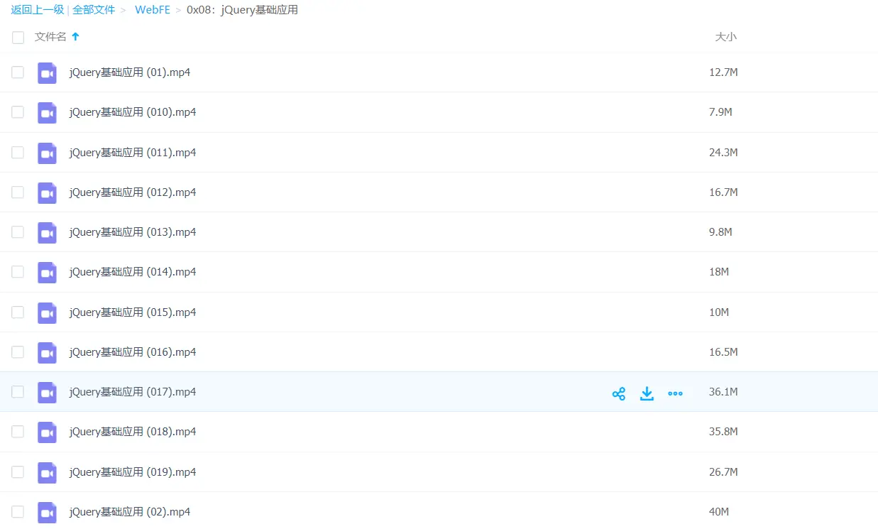 以上就是我给大家分享的一些视频教程,其他的视频也还有很多收藏的,基本大部分收到我自己花钱买的一些精品的视频教程,包括很多期某马的web前端视频教程,java,php等视频,内容完整性也非常的不错,老师讲的也非常清楚,适合不同阶段的人学习,但是在这里我就不放出来了,怕被和谐,我把链接放到公众号上,你们有谁需要的,可以去那边获取一下吧,具体的我舅不一一列出来了,把上面这段列出来,手也快断了。