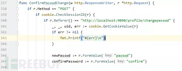在pkg/user/usermanager.go里我们发现ConfirmPasswdChange方法,不过这里进行了referer()的检查,在实战中referer校验虽然不像加token那样可以完全避免csrf,但伪造referer成本较高,所以这里不作为审计发现漏洞。