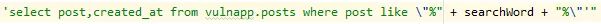在pkg/search/search.go里我们发现searchPosts方法,sql查询是直接拼接sql语句: