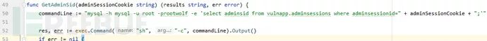 在pkg/admin/admin.go的52行发现命令注入,直观可以看出取出cookie的内容拼接命令语句执行。
