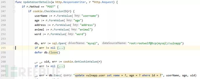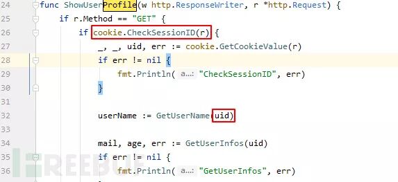 以pkg/user/usermanager.go为例来看,这里的功能是展示用户个人信息,通过取出cookie里的uid在数据库进行查询得到用户基本信息,在查询前有对cookie的有效性进行校验,避免修改cookie实现水平越权。