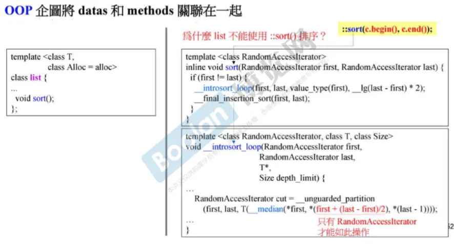 2.因为标准库的sort()函数需要的迭代器是具有randomaccess这种特性的,即就是需要的数据空间是连续的,可以完成加几到下一个数据这样的操作,但list不符合标准,他的空间是不连续的,每个数据都是独立的空间,所以他无法供应这样的迭代器。即:标准库sort()是对迭代器有一定要求的,但list不具备,所以它不能使用。