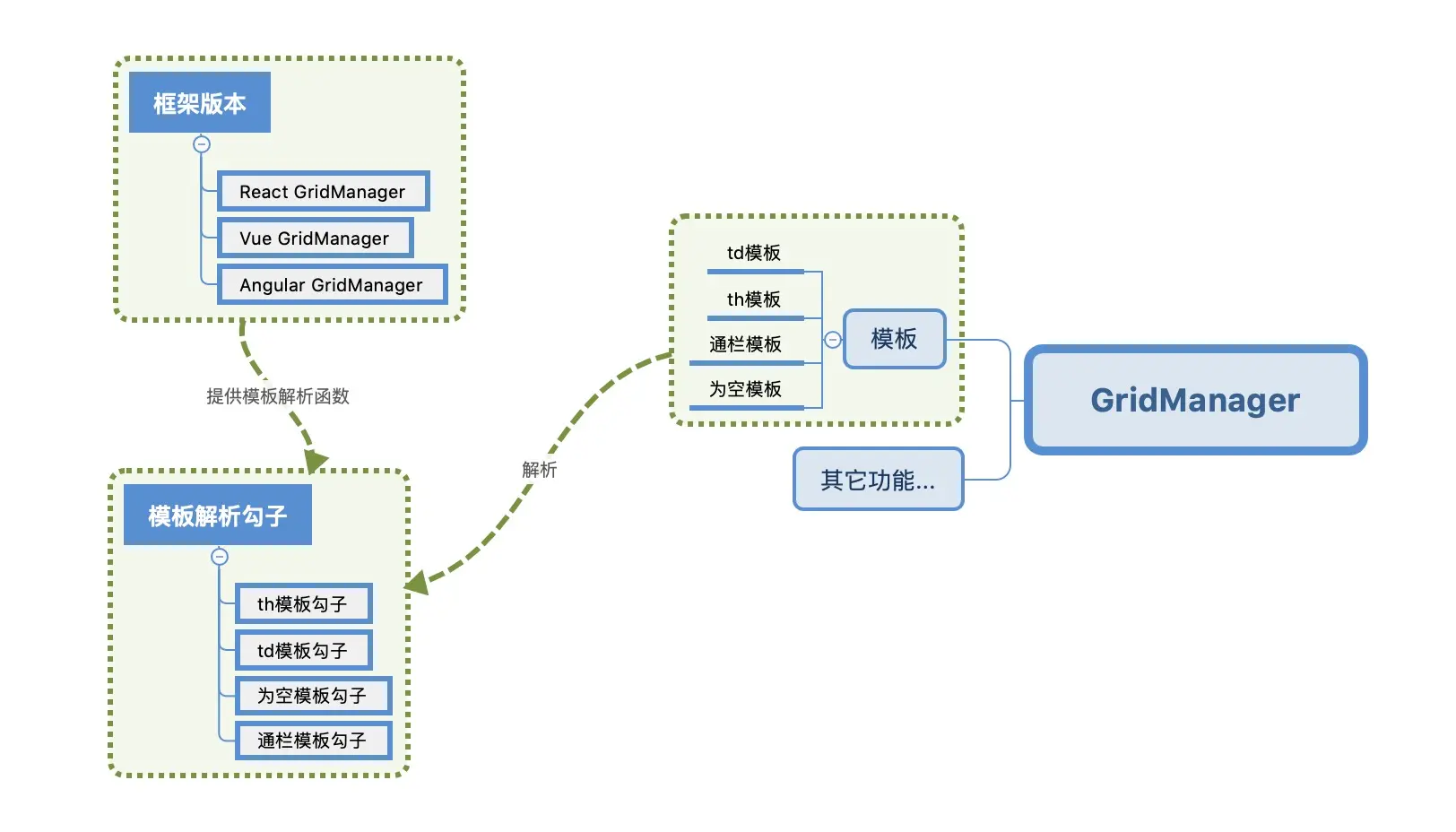 为这些模板提供解析函数, 通过该函数生成不同框架的待解析模板,并存入compileMap等待解析。