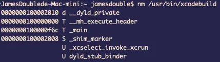 再打印 /usr/bin/xcodebuild 的 name list