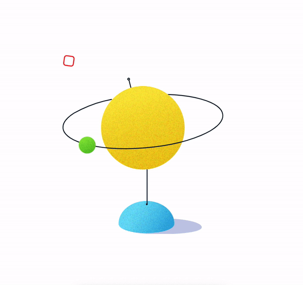 如您所见,有很多动画元素。我想给你看一个简短的版本,因为所有元素都有相似的动画。我选择了带有绿色球和一个元素(例如红色正方形)作为背景的地球仪。我们的动画看起来像这样。
