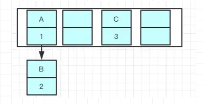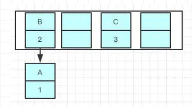 先举个例子吧,我们现在往一个容量大小为2的put两个值,负载因子是0.75,我们在put第二个的时候就会进行resize ,现在我们要在容量为2的容器里面用不同线程插入A,B,C,假如我们在resize之前打个断点,那意味着数据都插入了但是还没进行resize那扩容前可能是这样的,我们可以看到链表的指向A->B->C