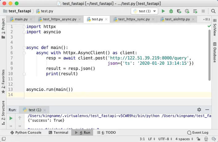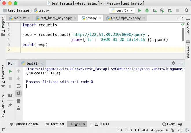 httpx 的同步模式与 requests 代码重合度99%,只需要把requests改成httpx即可正常运行。如下图所示: