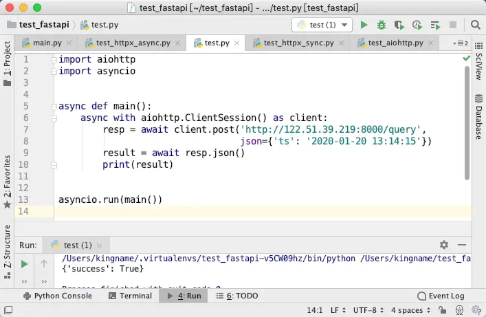 aiohttp 的代码与 httpx 异步模式的代码重合度90%,只不过把AsyncClient换成了ClientSession,另外,在使用 httpx 时,当你await client.post时就已经发送了请求。但是当使用aiohttp时,只有在awiat resp.json() 时才会真正发送请求。