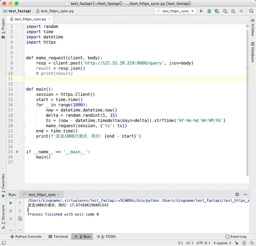 发送1000次请求,httpx 同步模式耗时18秒左右