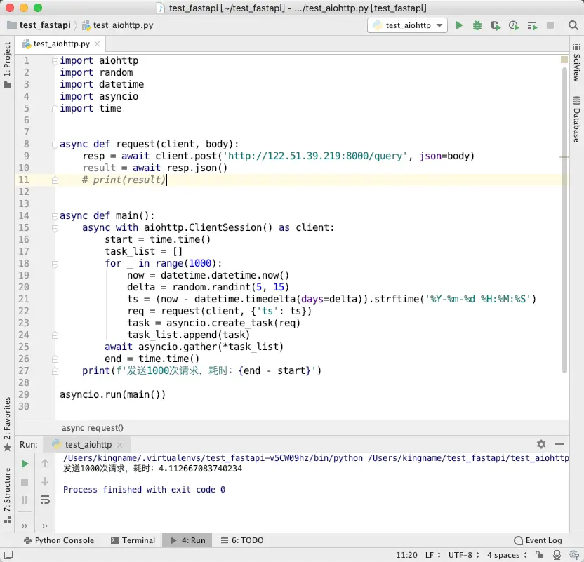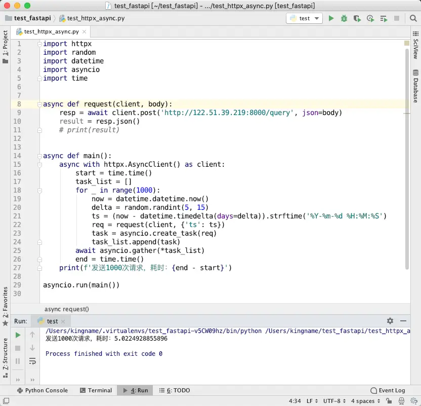 发送1000次请求,httpx 异步模式耗时5秒左右