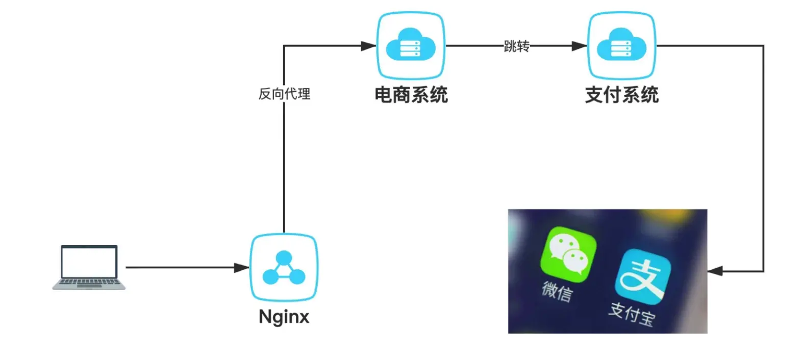 核心功能剖析 下单-》支付nginx 将用户请求反向代理到我们编写的电商系统 = 下单之后,点击支付跳转到支付系统,最后对接通过跳转将业务和支付解耦,不管电商系统,还是新增的活动系统都可调支付系统
