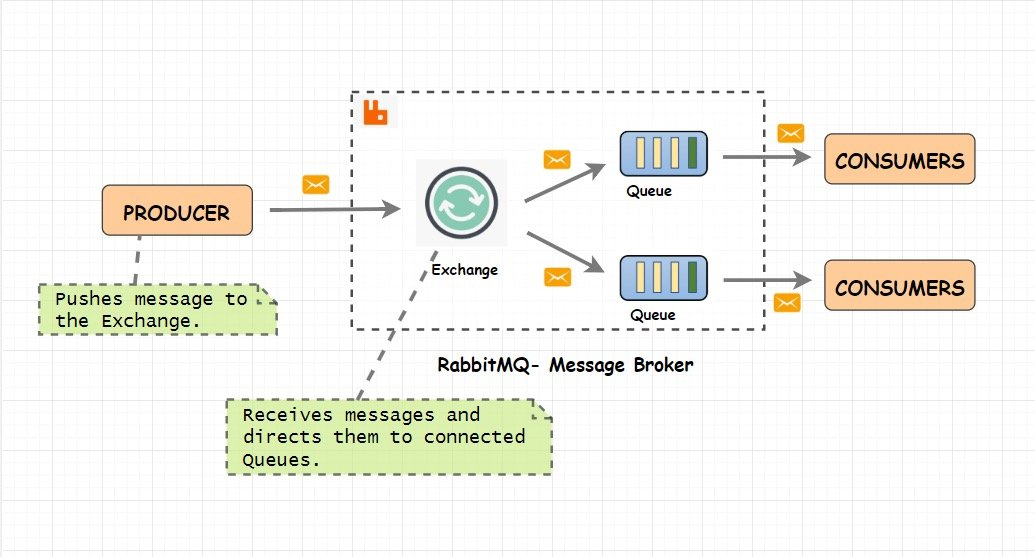 当一个消息发布到 RabbitMQ 后,首先到达 Exchange,然后 Exchange 把消息分配给 Queue,消费者从 Queue 中得到消息。