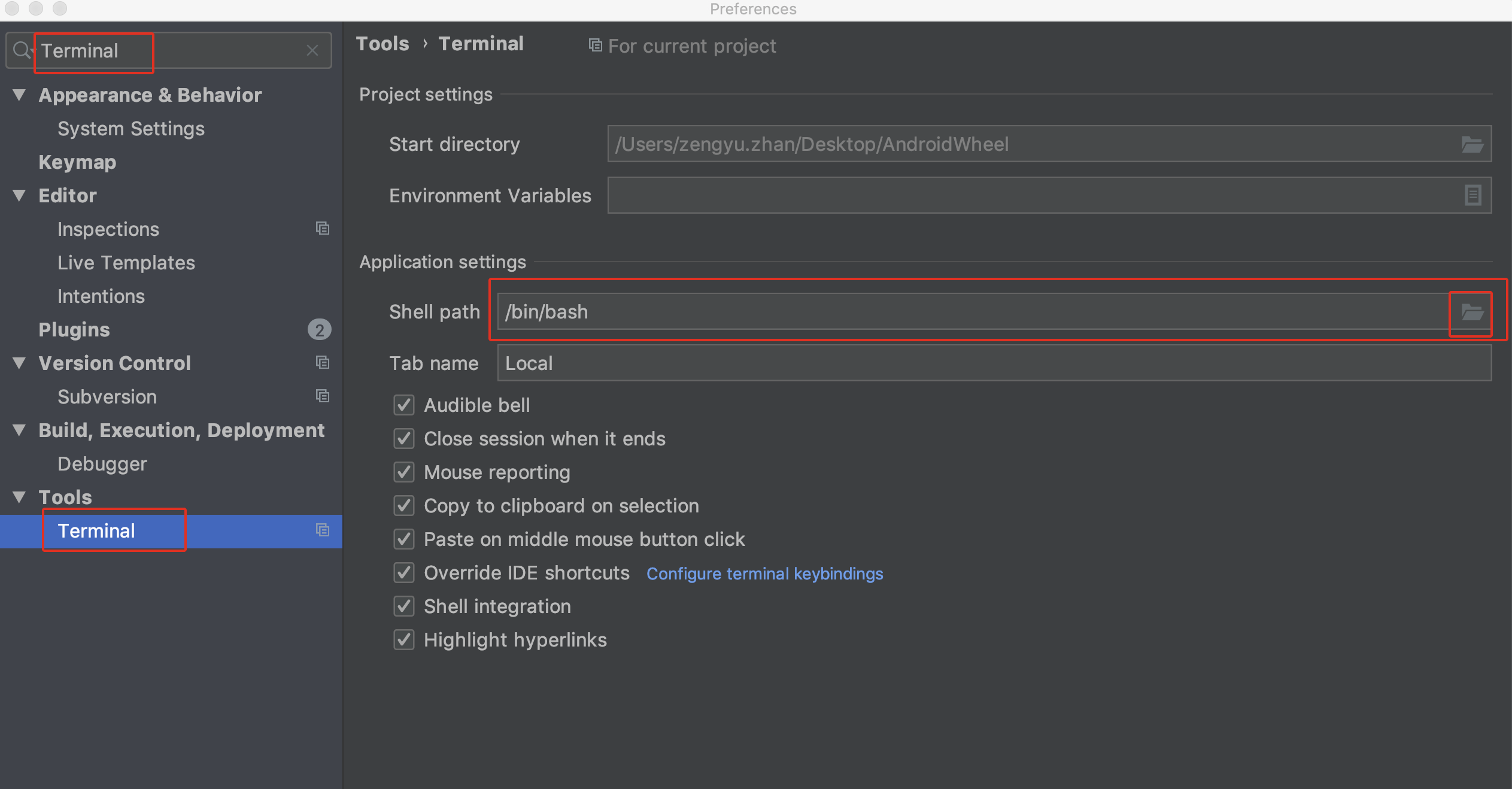 设置完之后新开启的 Android Studio 上的 Terminal 就是 zsh 的了。