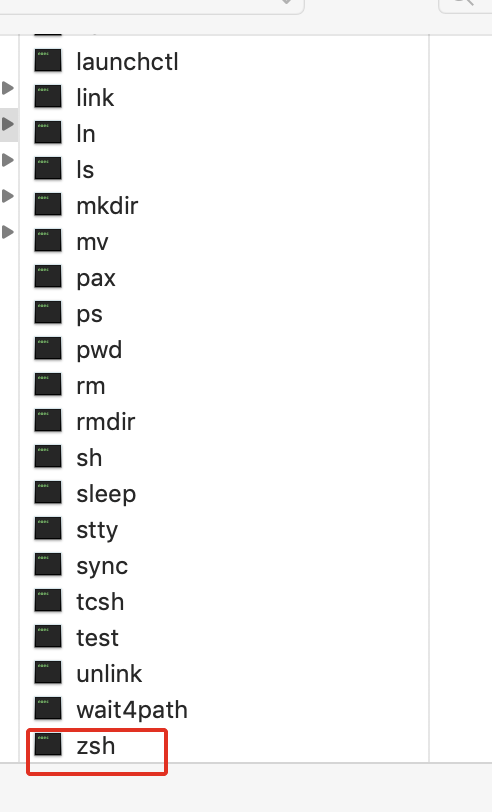 而 zsh 普通二进制文件是白色、具有可执行权限的文件是红色、目录是青色。