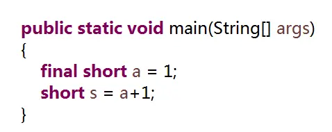 当a前面加上了final关键字,a的值不能再发生变化,它变成了一个常量。编译器就会认定这次赋值是安全的,因为a的值永远都是1,赋值肯定不会超过范围。