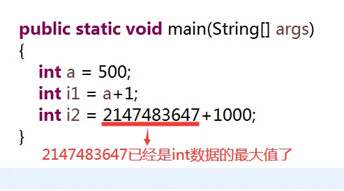 大家可以看到,在上面的程序中,我们给int类型变量i1赋值时,“=”右边也是一个算术表达式,并且表达式中也有变量,但不会出现语法错误。而给i2进行赋值时,“=”右边的值已经超过了int类型的范围,也不会有问题。