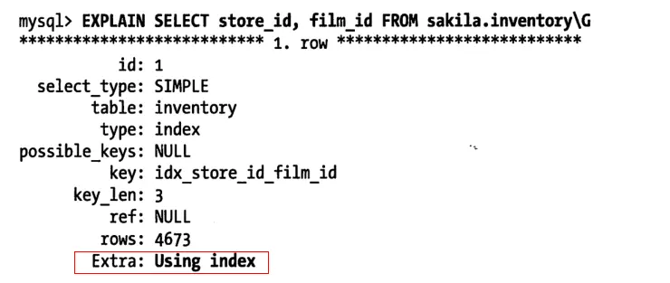当发起一个索引覆盖查询时,在explain的extra列可以看到using index的信息