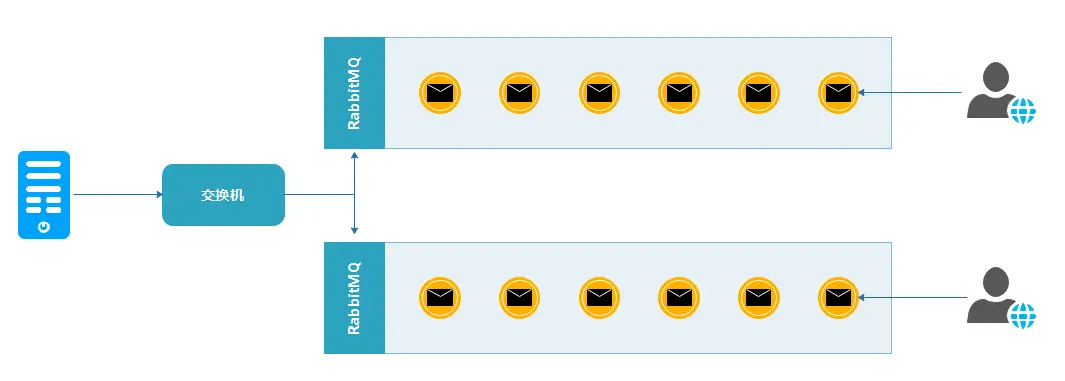 - 生产者发送的消息经过交换机到达队列后,一个消息可以被多个消费者消费