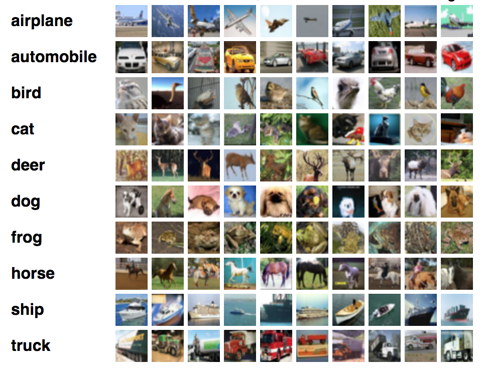 案例中的数据集来自众所周知的CIFAR-10,它由60000个32x32像素的彩色图像组成,这些图像属于不同的对象类别,如狗、猫和飞机。相对而言,CIFAR不是一个很大的数据集,但是如果我们使用完整的TinyImages数据集,就需要大约400GB的可用磁盘空间,对于学习而言,这太奢侈了。