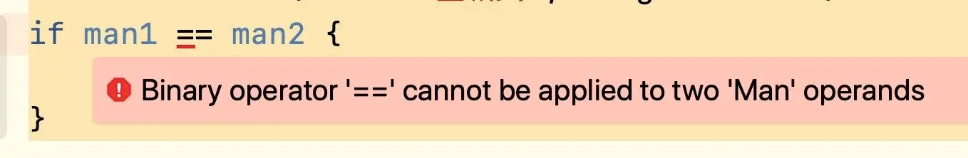 很显然在 Swift 的世界里,并不是所有东西都可以用 == 进行判断,例如: