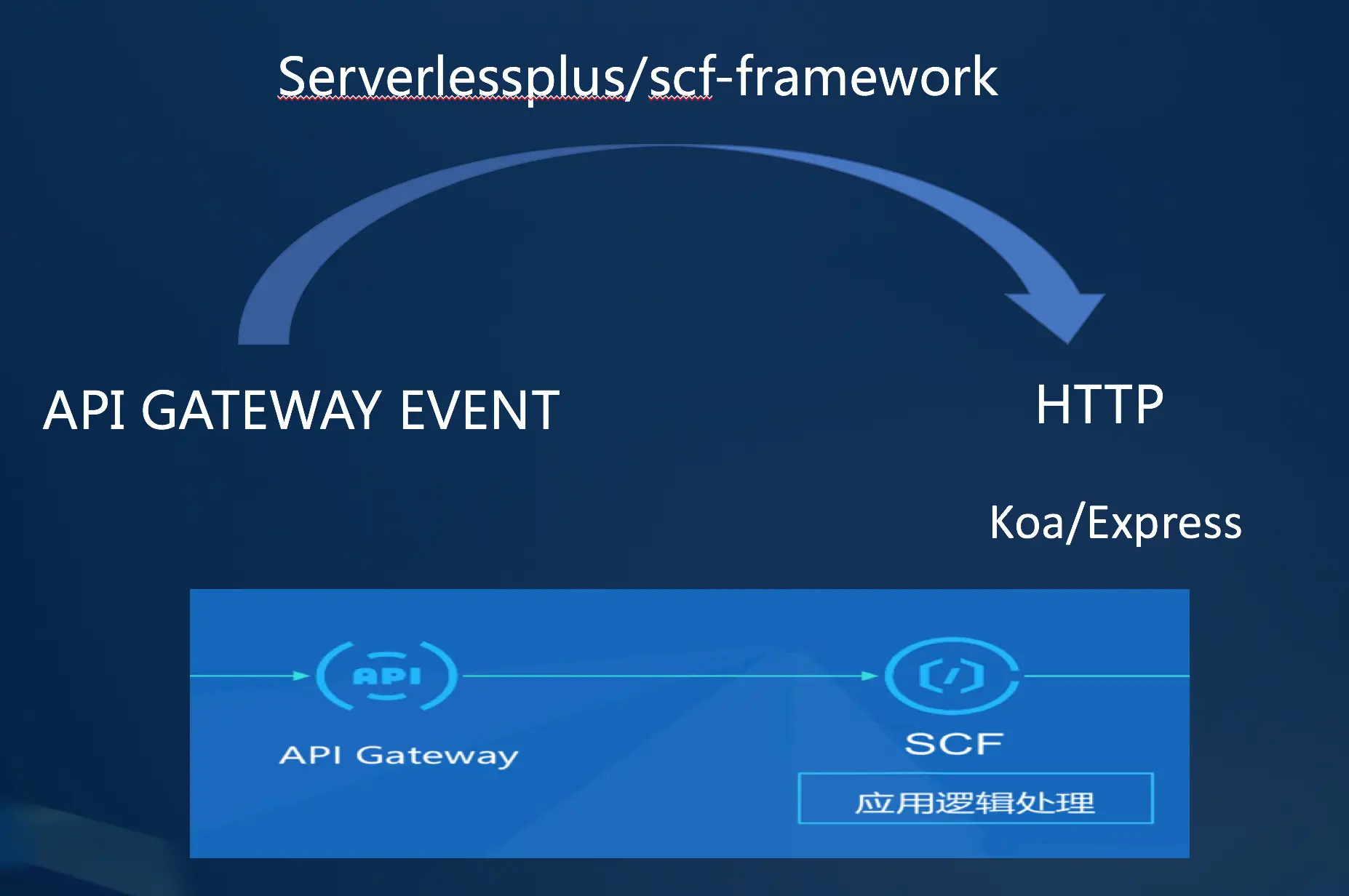由于我们的 web 应用被 scf 包裹,而 scf 拿到的参数是一个 event 结构的对象,我们需要配合中间件,用 event 构造 http 包,再扔给 web 应用。 常用的中间件有 severless plus,serverless-http等。