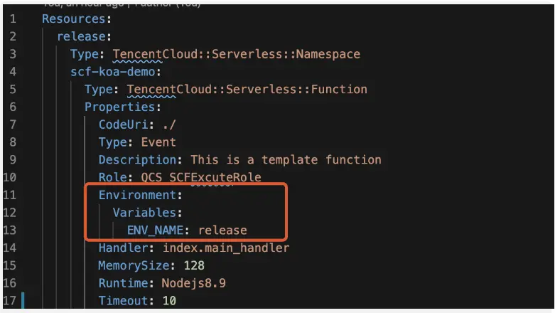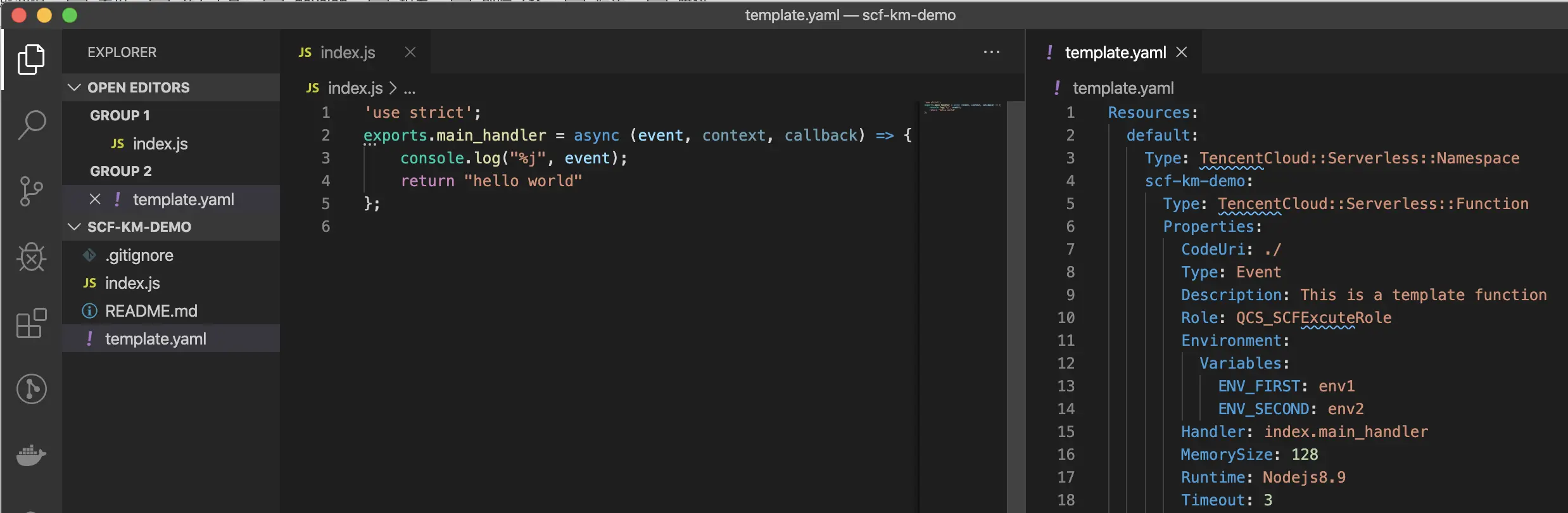 template.yaml: 函数配置文件,可用于修改函数的环境变量,命名空间和超时等配置信息。