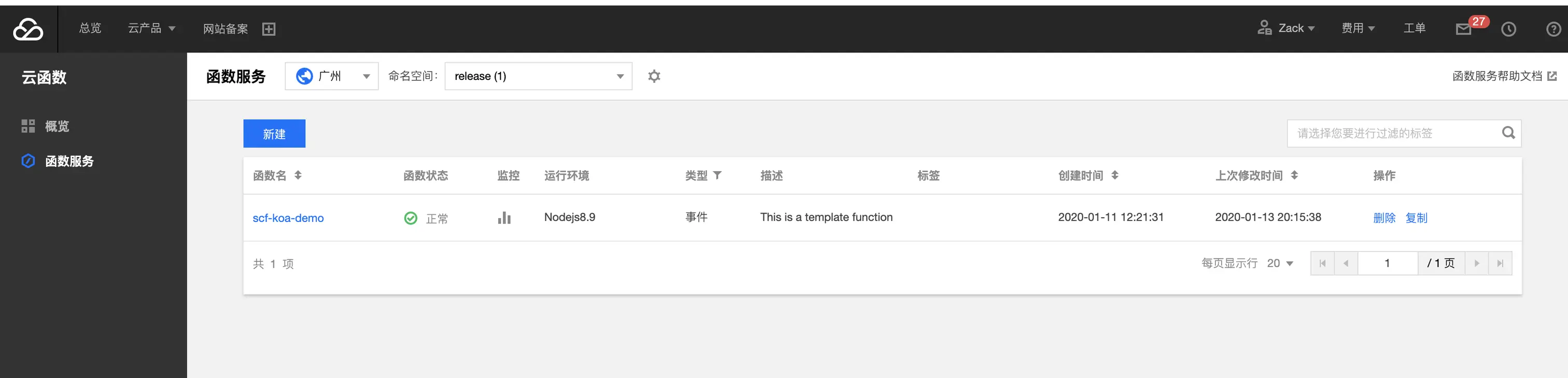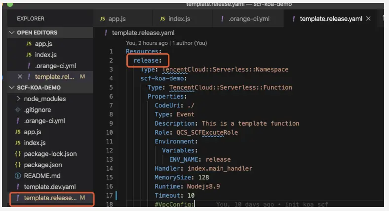 scf init --runtime nodejs8.9 --name scf-koa-demo