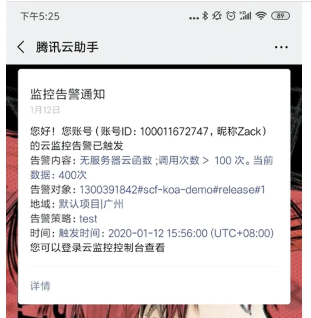 在腾讯云控制台,可以查看部署的 scf 的执行日志: