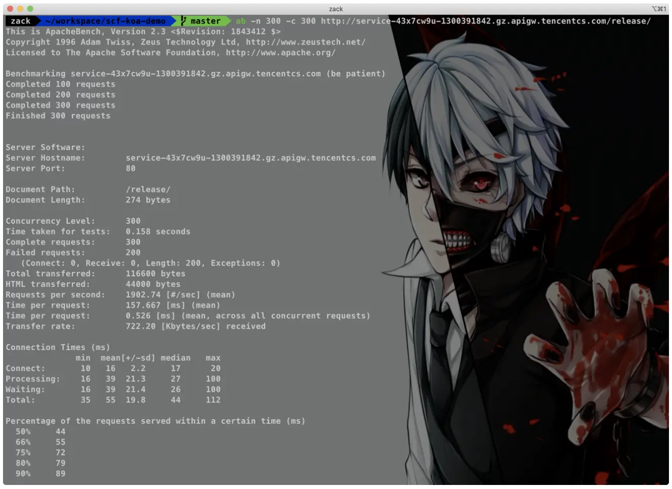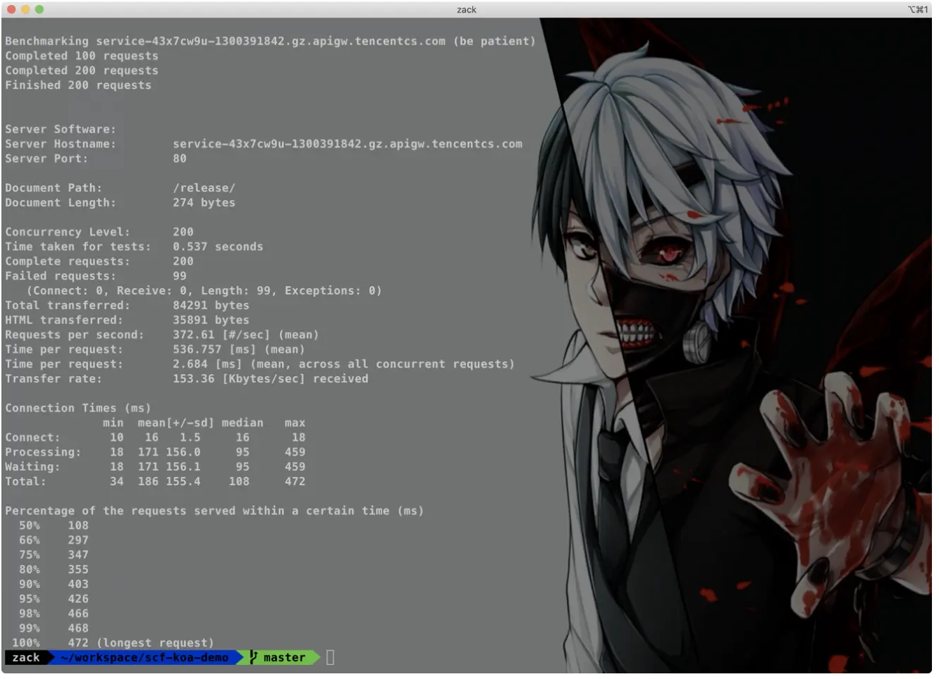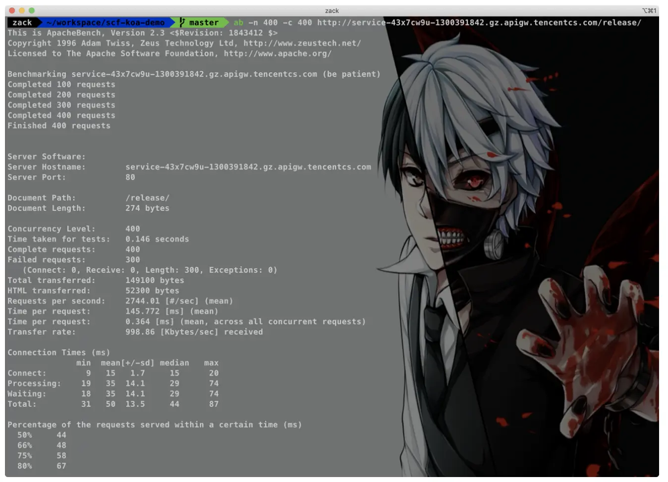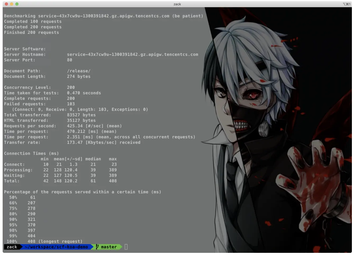 无实例保留时,请求失败率很高,而且请求处理时间更长(因为还有函数冷启动的时间: 1183ms-472ms=711ms)。