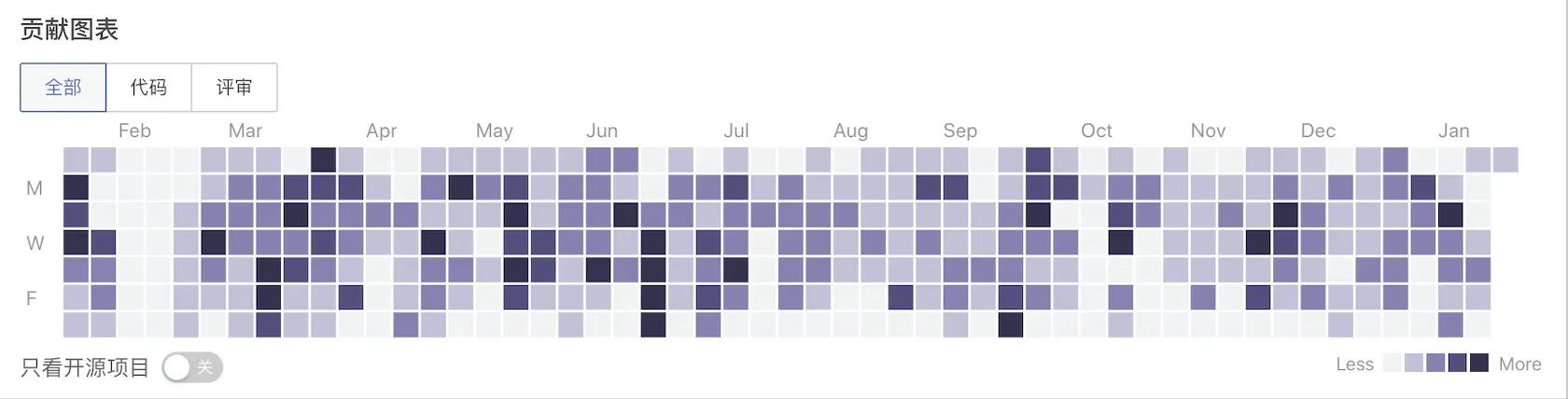 虽然在团队管理上面,的确会消耗一定的精力,但是该写的代码还是要写的。单从提交记录来看,自己应该还算勤奋,在家一时兴起周六周日的提交也不少(不过一般懒得去公司,所以系统上真正的加班记录少得可怜)。
