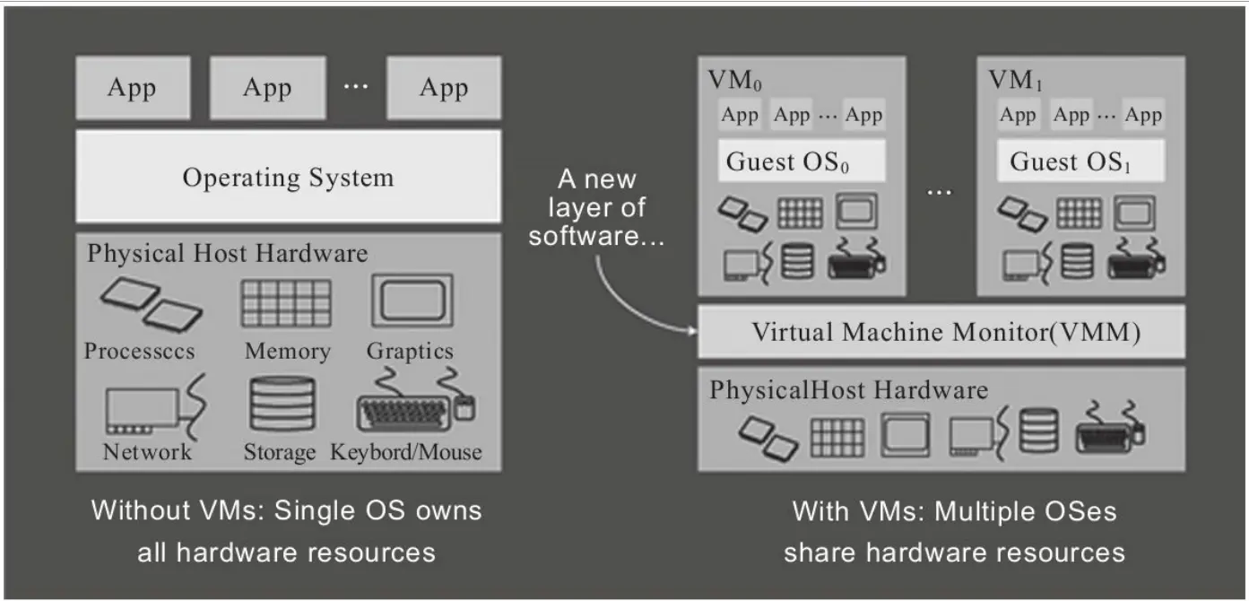 硬件虚拟化技术就是指计算机硬件本身提供能力让客户机指令独立执行,而不需要 (严格来说是不完全需要)VMM截获重定向。
