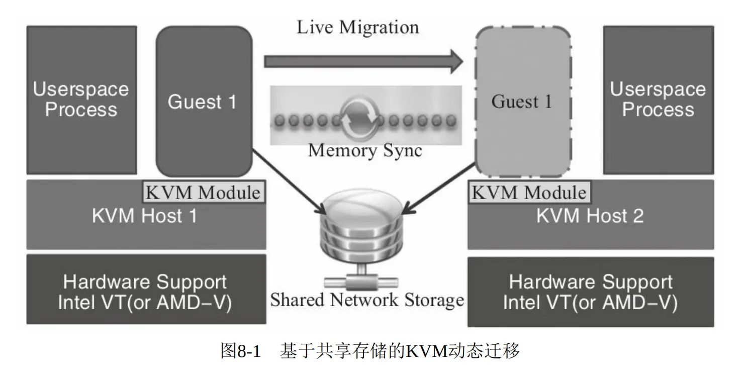在虚拟化环境中的迁移,又分为静态迁移,和动态迁移,也有部分人称之为冷迁移和热迁移,或者离线迁移和在线迁移。静态迁移和动态迁移最大的区别就是静态迁移有一段明显时间客户机中的服务不可用,而动态迁移则没有明显的服务暂停时间。虚拟化环境中的静态迁移也可以分为两种,一种是关闭客户机后,将其硬盘镜像复制到另一台宿主机上然后恢复起来,这种迁移不能保留客户机中运行的工作负载;另一种是两台宿主机共享存储系统,只需在暂停(而不是完全关闭)客户机后,复制其内存镜像到另一台宿主机中恢复启动即可,这种迁移可以保持客户机迁移前的内存状态和系统运行的工作负载。