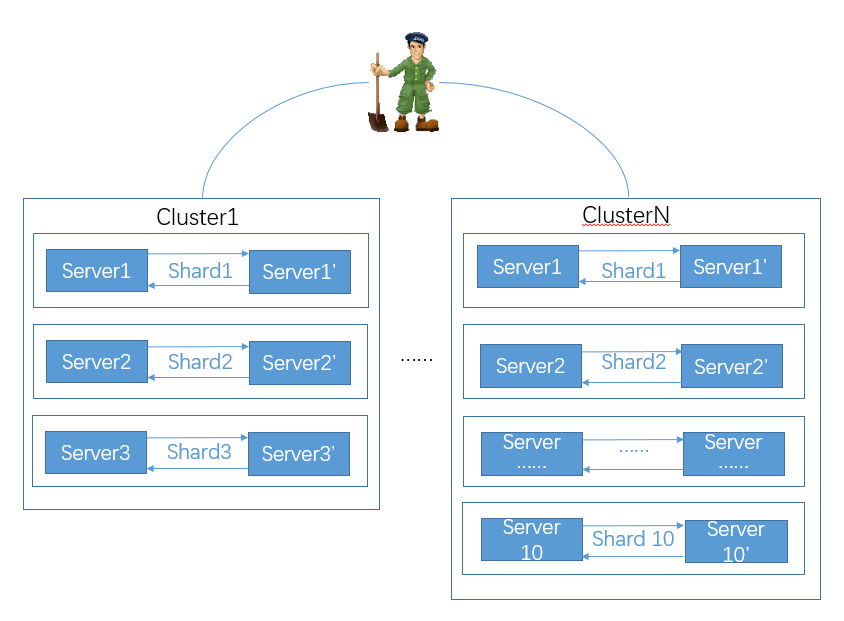 我们采用多Shards、2 Replicas的方式,通过Zookeeper进行服务器间互相备份,允许一个shard一台服务器down机数据不丢失。为了接入不同规模的日志,我们将集群分成6台、20台两种规模的多个集群。