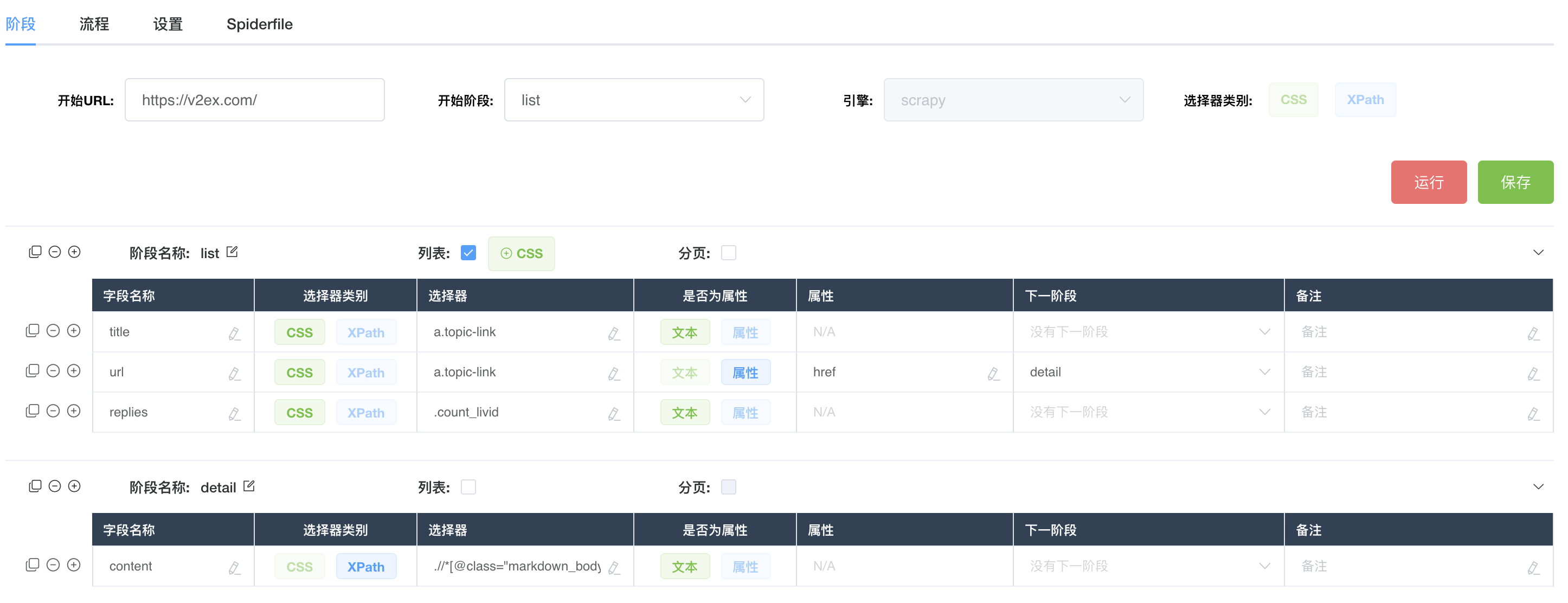 市面上免费开源的可配置爬虫框架并不多。比较早的有微软大神崔庆才开发的 Gerapy,属于一个爬虫管理平台,能够根据配置规则生成 Scrapy 项目文件。另一个比较新的可配置爬虫框架是 Crawlab(其实 Crawlab 不是可配置爬虫框架,而是一个灵活度很高的爬虫管理平台),在 v0.4.0 中发布了可配置爬虫。另外还有一个基于 Golang 的开源框架 Ferret ,很有意思,编写爬虫跟写 SQL 一样简单。其他还有一些商业产品,但据用户反馈后都觉得专业度不高,不能满足生产需求。