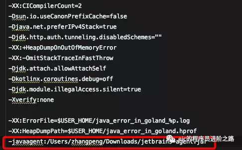 -javaagent:xxx/jetbrains-agent.jar注意: 其中xxx为该jar包所放置的位置。