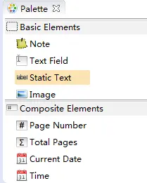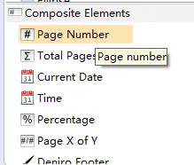 组合元素指的是之前预配置好的元素。Jaspersoft Studio 中内置了一些组合元素,诸如 page number 等: