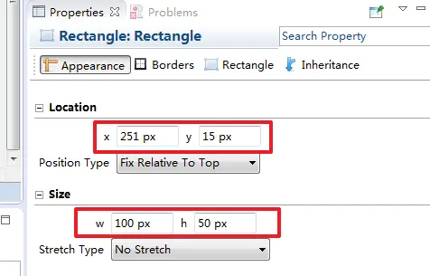 元素的具体属性依赖于具体的元素类型,下面是矩形元素的属性视图: