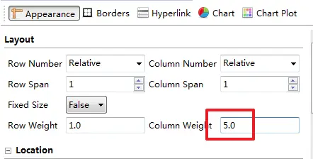 | Row Weight | Number,默认值为 1。 | 指定这个元素的行数——相对于其他行中的元素的多少倍。 |