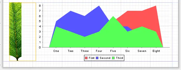 4、通过 Palette 的 Chart 元素,新增一个 Area Chart,放在垂直型的图片的右边。
