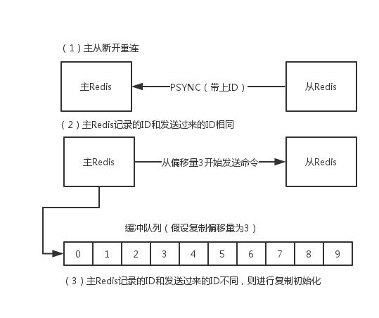注意:在Redis2.8之后,主从断开重连后会根据断开之前最新的命令偏移量进行增量复制。