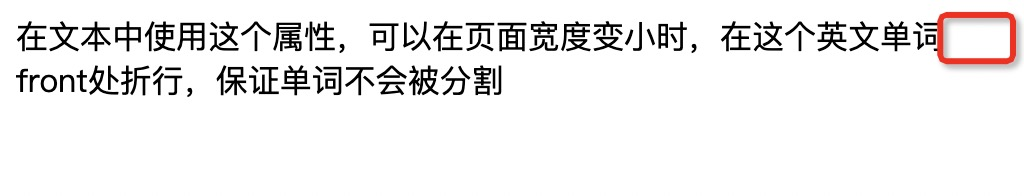 <p>在文本中使用这个属性,可以在页面宽度变小时,在这个英文单词<wbr>front<wbr>处折行,保证单词不会被分割<p>