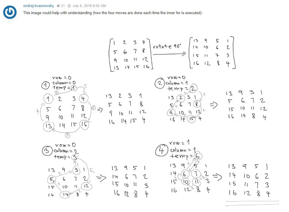 matrix[n-i-1][n-j-1]=matrix[j][n-i-1];