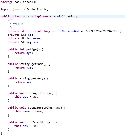 1)定义一个Person类,实现Serializable接口